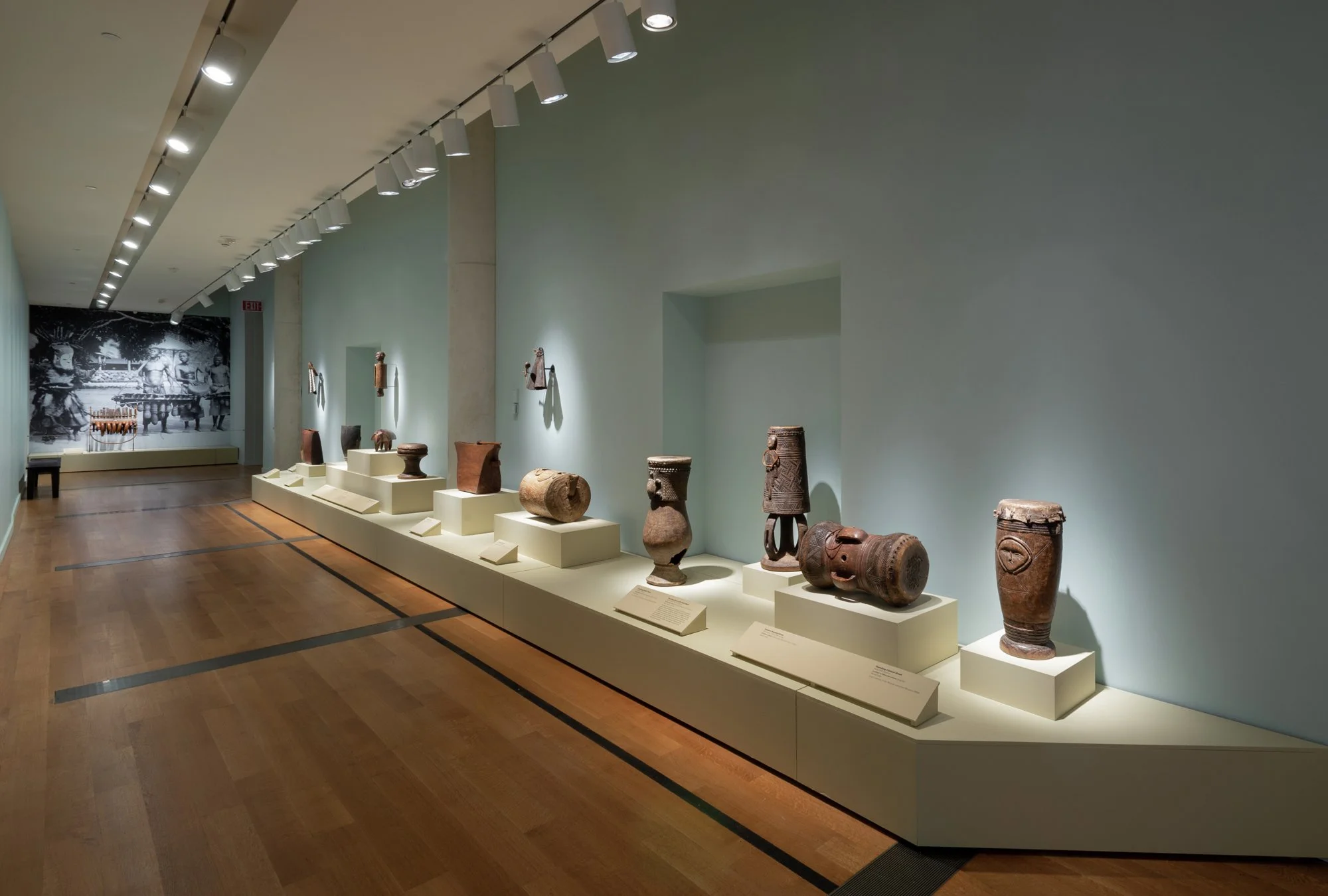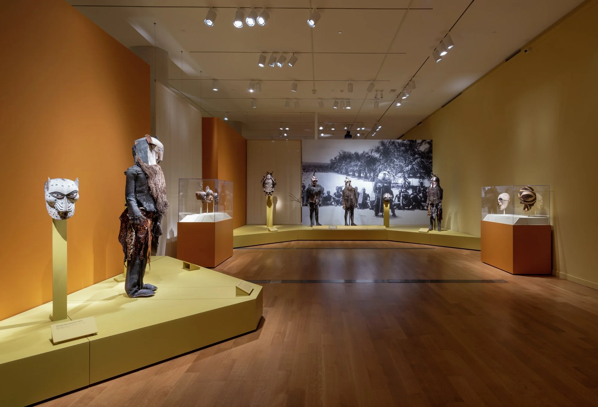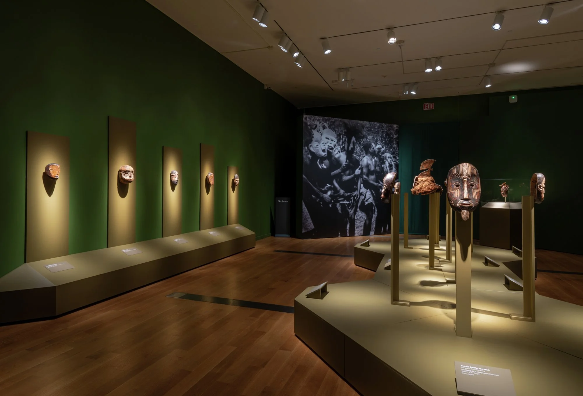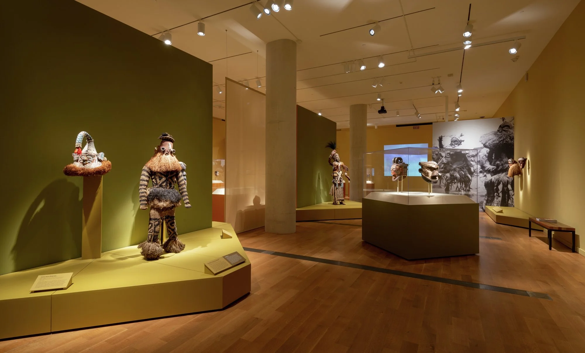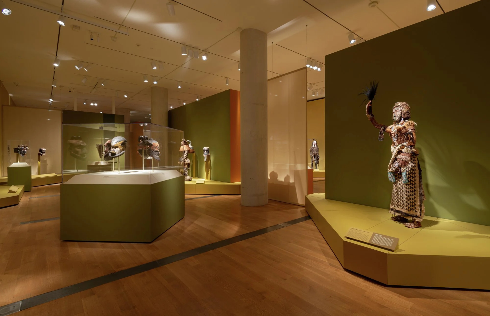 The spatial design was engineered to create an immersive experience that mirrored the environments from which the art originated. The large north gallery was dedicated to the six stylistic zones of the savannah, designed with an open layout and permeated by dusty colors to evoke the expanse and freedom of that landscape. Conversely, the south gallery, dedicated to the five stylistic zones located in the rain forest, featured a deliberately more constrained and vertical path of circulation, guiding visitors through spaces that mirrored the density, complexity, and layered canopy of the tropical environment.