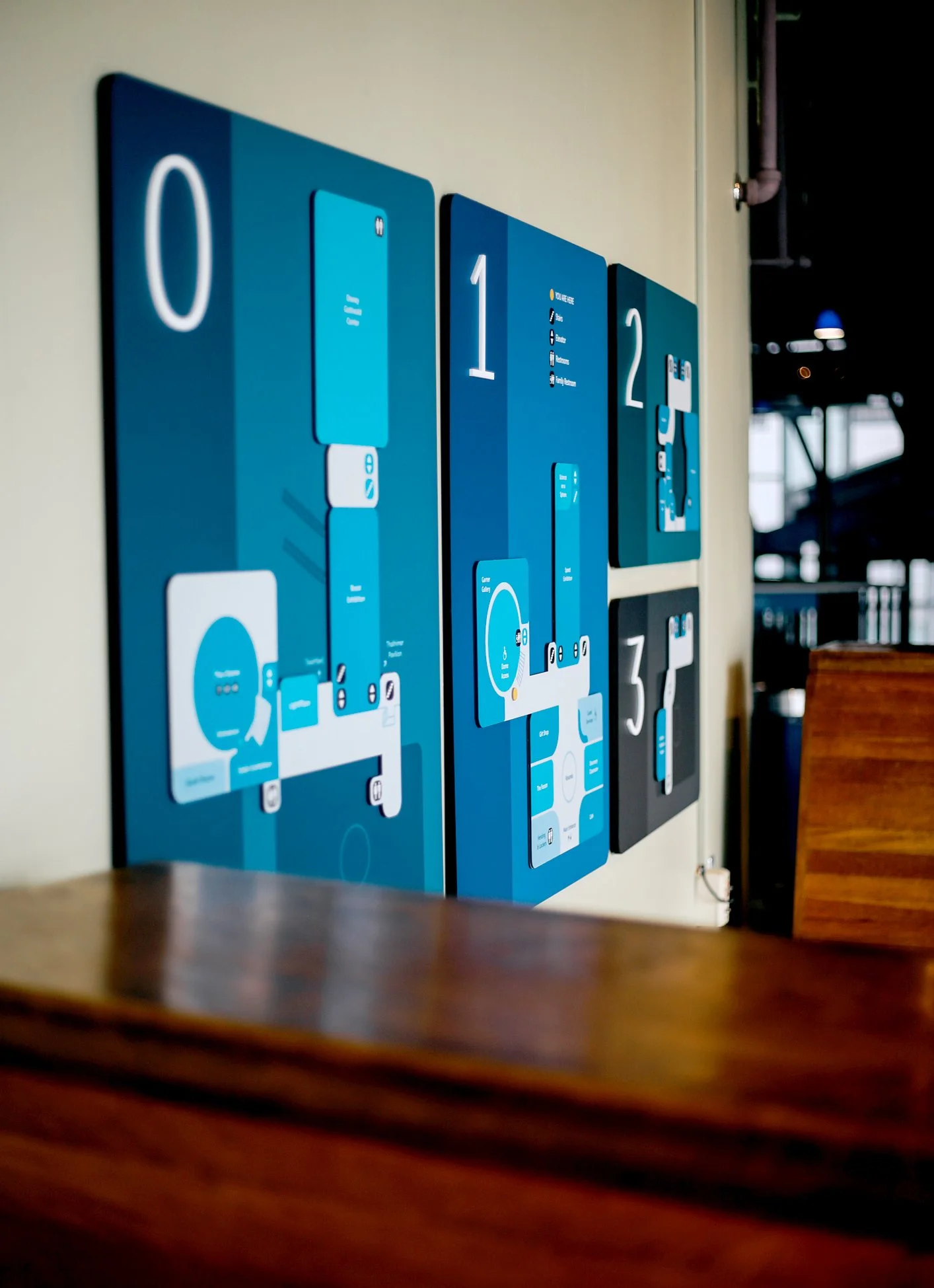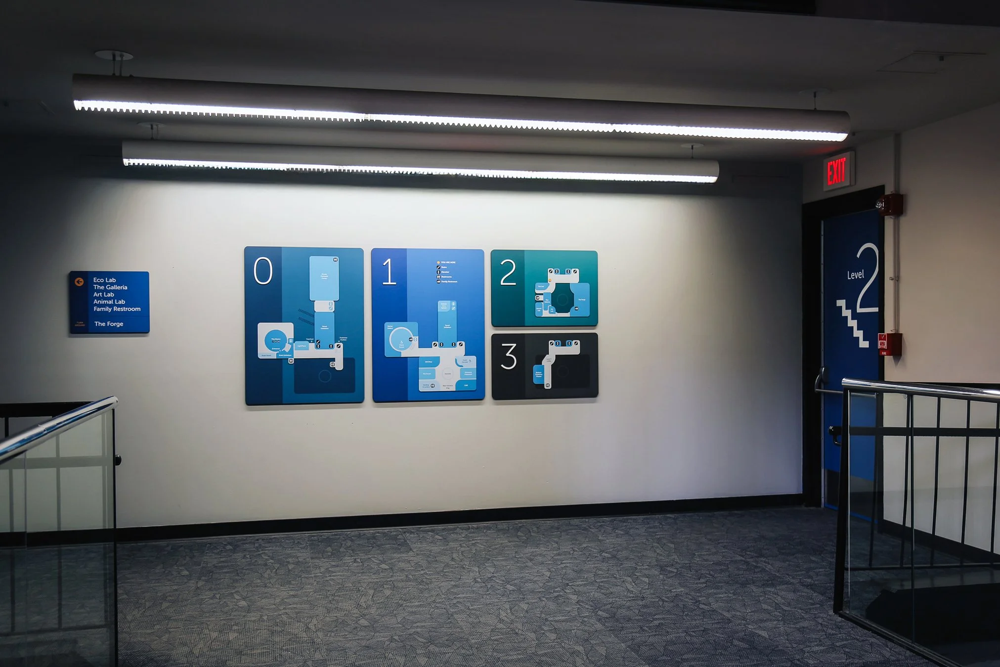 The resulting wayfinding system balances clarity, hierarchy, and visual cohesion across orientation, directional, identification, and informational signage. A modular family of directories, maps, and directional signs creates a consistent visual language throughout the Museum, using color, typography, and iconography to guide movement, reinforce destinations, and support accessibility. Flexible formats allow the system to adapt as exhibitions and programs evolve.